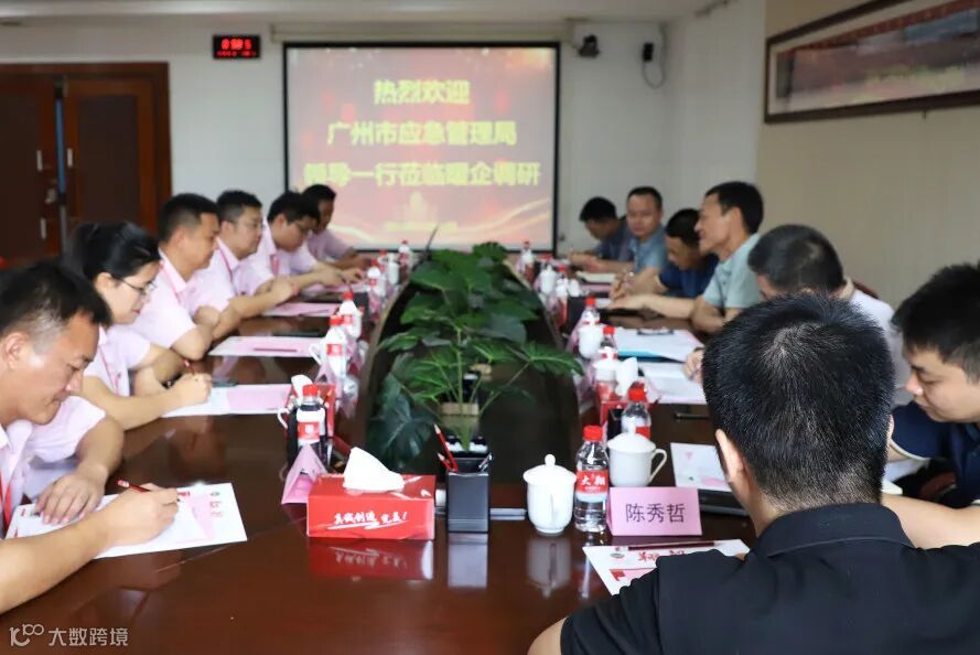 9月12日,广州市应急管理局郑程藩副局长带领荔湾区应急管理局一行领导莅临大翔集团进行暖企调研,了解公司在生产经营中存在的困难,大翔集团副总裁肖奕阳、集团人力资源总监刘宗涌等陪同参加座谈会。