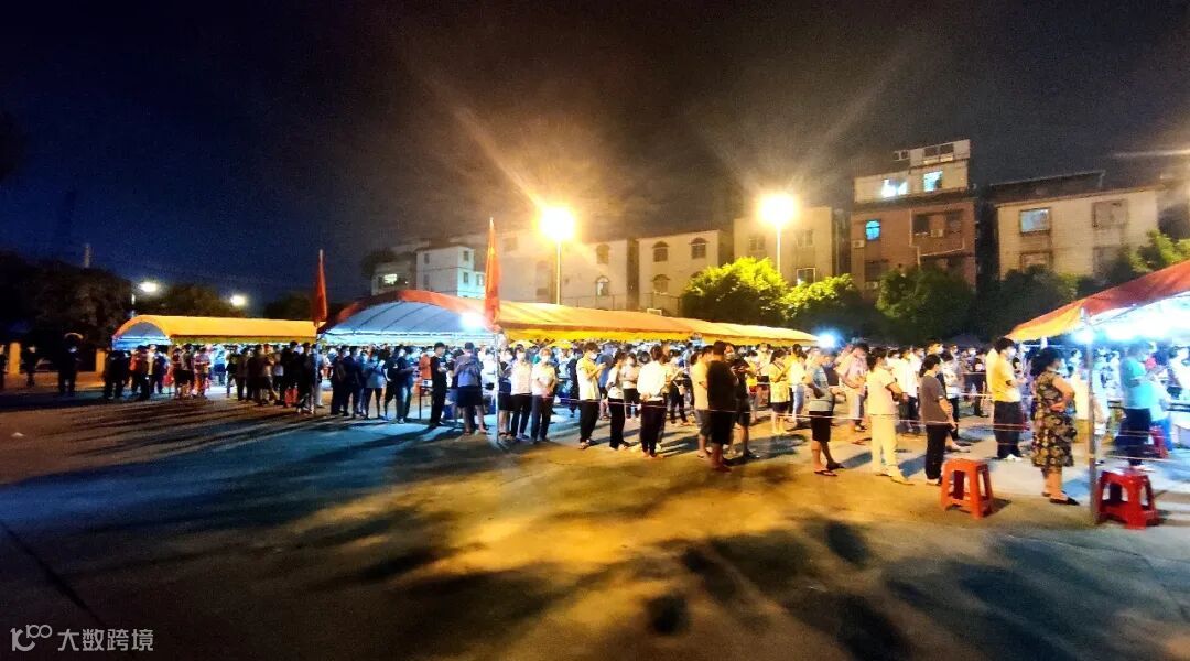 从傍晚7点30到次日凌晨近1点,志愿者们和医护人员坚守岗位,为南漖联社8千名群众进行了核酸检测。此时,夜已深,南漖联社还有约3千名群众没有检测。考虑到医护人员、志愿者以及人民群众的健康,现场指挥决定将未检群众安排到早上接受检测。
