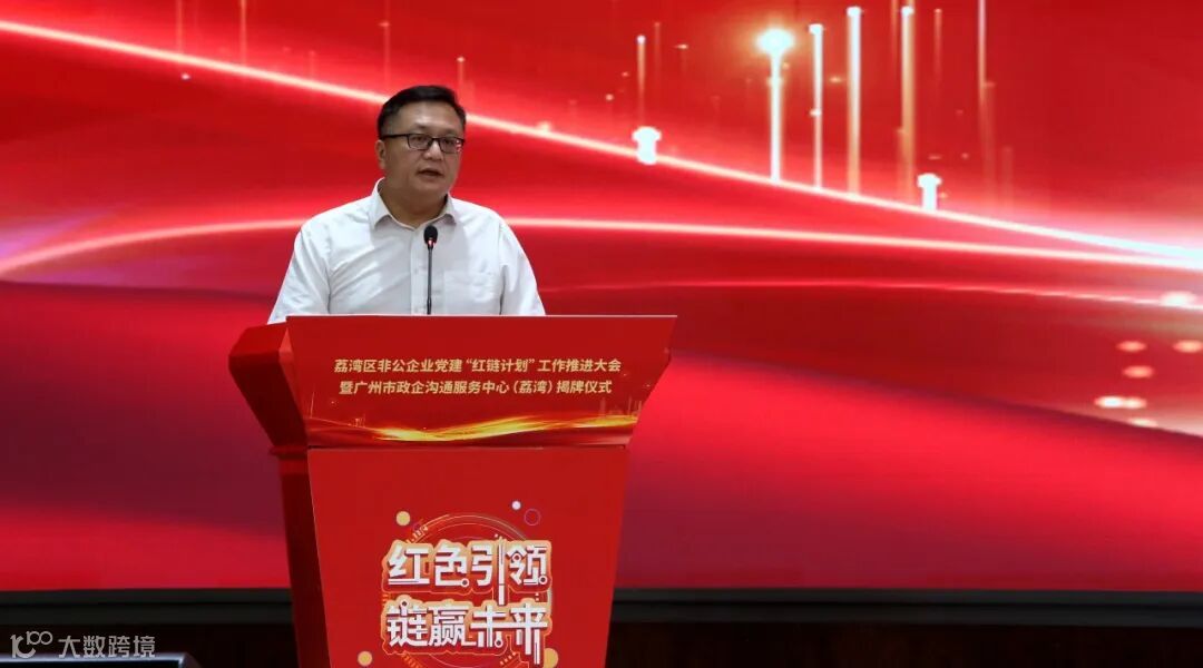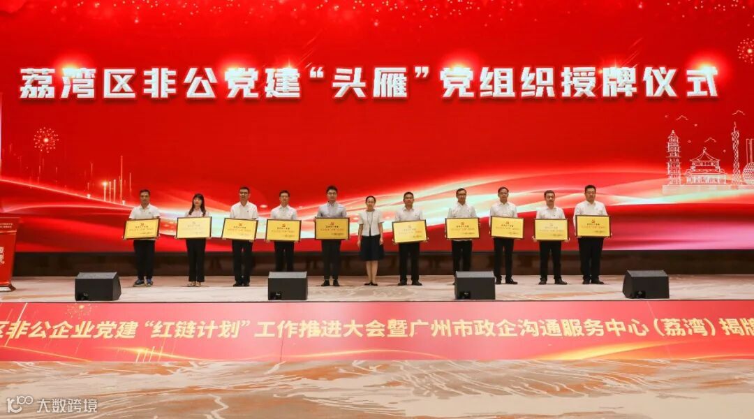 7月13日,荔湾区非公企业党建“红链计划”工作推进大会暨广州市政企沟通服务中心(荔湾)揭牌仪式在广州市国际医药港举行,市工商联党组成员、专职副主席林小兵,荔湾区委常委、组织部部长黄洪飙以及区有关单位领导,各街道党工委副书记出席会议,区产业链大党委相关企业代表、工商联企业代表、非公企业党组织书记约260人参加会议。会议通报表扬了大翔医药集团等10个区非公党建“头雁”党组织,对荔湾区四大产业链党委集中揭牌,市区领导及工商联企业代表集中参观了荔湾政企沟通服务中心并举行了揭牌仪式。