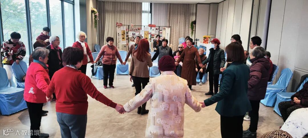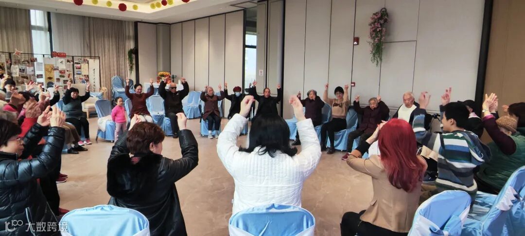 20多名长辈和导师围成一圈,在导师的带领下,欢乐互动,长辈们不知不觉发现手脚协调了,动作和音乐仿佛融为一体。