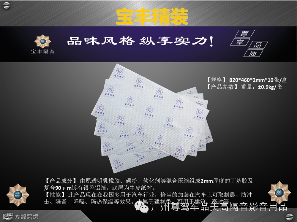 请各代理商和消费者注意:因一些客户反映,原宝丰隔音部分产品使用比较简单和单薄的牛皮纸箱包装,致使产品在长途货运途中出现损伤或残缺。虽然代理商和消费者们都知道是物流多次搬运所造成,但是公司也不能只看利益而不顾客户们的损失,所以决定把单薄的牛皮纸箱包装全部升级成精包装。原有旧包装表面没有店家和商品标示,容易造成山寨品的出现。宝丰精包装有完善的店家、商品标示、高科技防伪标识的标示,消费者选购需认准产品各个防伪标示。