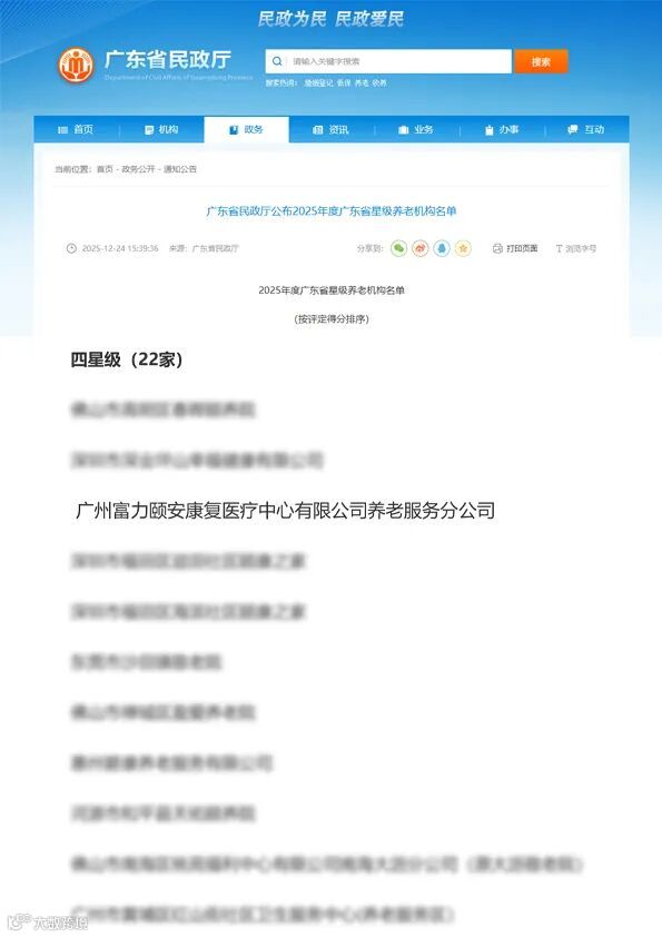 近日,2025年广东省星级养老机构评定结果正式揭晓,富力颐安·广州国际颐养社区首次参评便荣获四星级养老机构称号,为养老机构参与首评可获得的最高评级,彰显其专业康养服务硬实力。