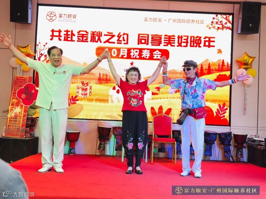 金秋美满,快乐相伴。富力颐安-广州国际颐养社区10月祝寿会如约而至。参加生日会的长辈们都纷纷穿上自己最漂亮的衣服,早早地落座在布置得喜气洋洋的多功能厅。