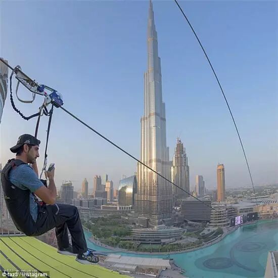 韩国综艺runningman就曾到这里录制,主持人各个都被吓到哭了。这个滑索的起点位于世界最高楼哈利法塔旁边一座数百米高的摩天大厦楼顶,终点位于迪拜购物中心。在40秒的飞降过程中,能将这座沙漠都市的繁华风光一览无余,中途可以俯瞰到迪拜标志性的音乐喷泉。如今已成了游玩迪拜的必选项目之一。