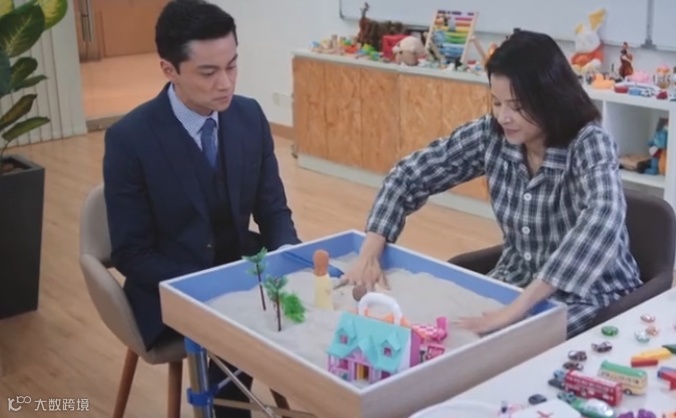 通常沙盘或沙箱,是“沙盘治疗”的核心道具,来访者通过使用沙具在沙盘上制作沙盘作品,在这个过程中,咨询师的工作主要就是陪着来访者,默默观察,做一些简要的记录,就如剧里所说“整个过程不受限,自由发挥”。