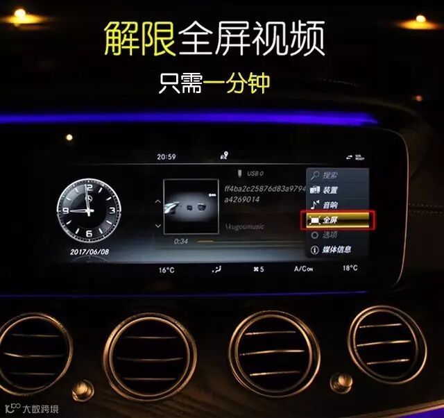 全屏行车视屏播放激活器解限。行驶过程中播放视频,装X神器,分辨率绝对超赞,这么大的屏幕不能看视频真的太浪费了。只属于你的空间