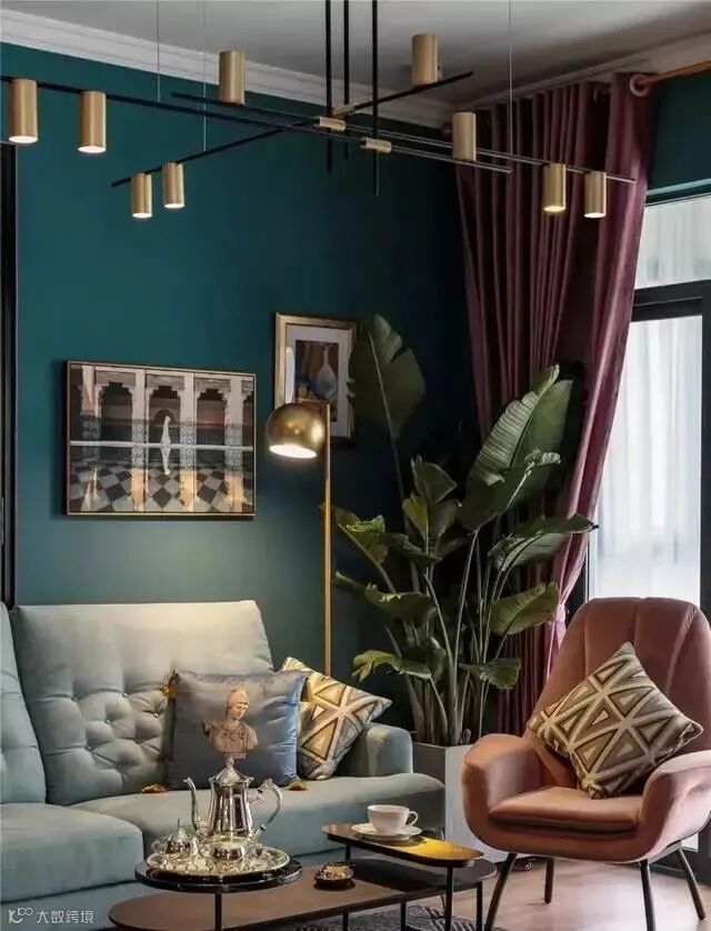 这两种颜色可以用在灯饰和装饰上,如金属质感的灯具、椅子或者摆件等,简简单单的搭配,反而能传递出摩登时尚之美。