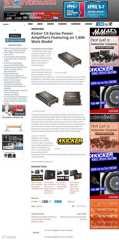 KICKER CX系列新产品在美国当地杂志上刊登报道截图