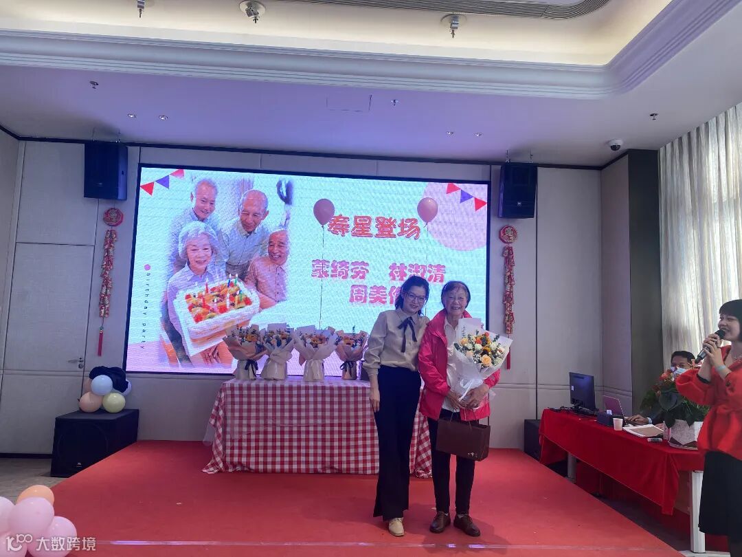 随着欢快的管弦乐合奏《生日快乐歌》,社区领导为现场的会员们送上祝福,工作人员为寿星们送上精心准备的蛋糕及礼物,表达心意。