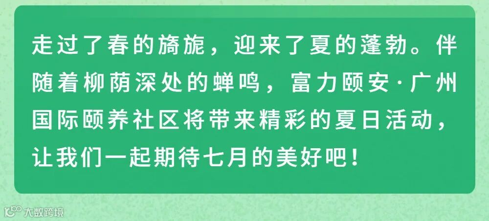 活动预告丨富力颐安·广州国际颐养社区7月活动预告来啦~