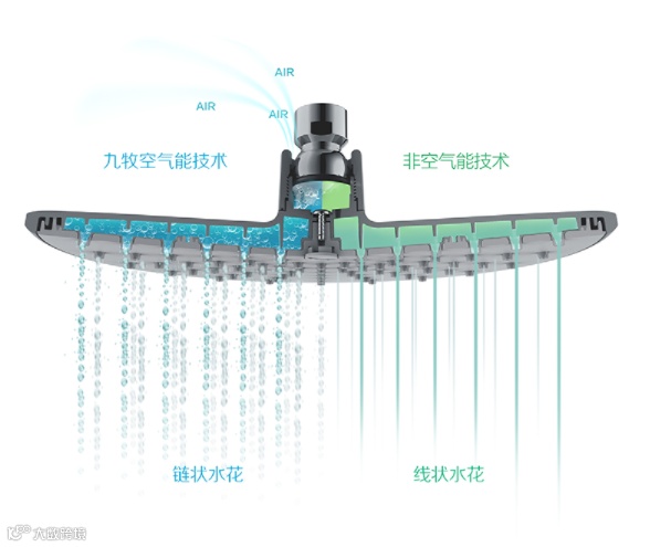 九牧潜心研创空气能科技花洒,将空气与水充分结合,出水均匀细腻柔和;脉动而有节奏感的水流轻触按压,让你在彻底清洁身体之余,神清气爽焕然一新。空气能富氧科技,升级淋浴体验。