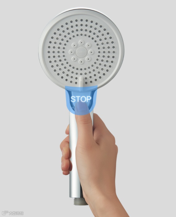 根据人体工程学优化花洒构造,手持花洒时拇指顺势贴合按键上,一键按压轻松止水。解决洗头、(为孩子/宠物)洗澡等双手忙碌腾不开手情境下开关不便问题。