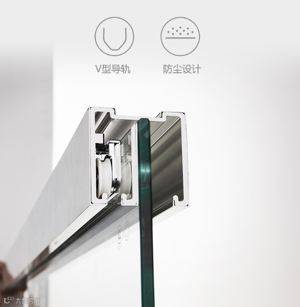 采用双材质-不锈钢包铝材的上导轨,结构坚固,承重能力更强;滑轮采用可调节顶针,滑动过程不晃动、不跳轨,增加安全系数。