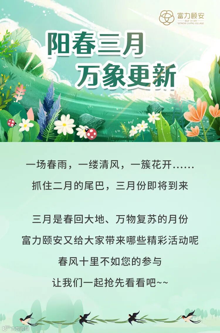 冬将至,春可期丨富力颐安3月份活动菜单来了~