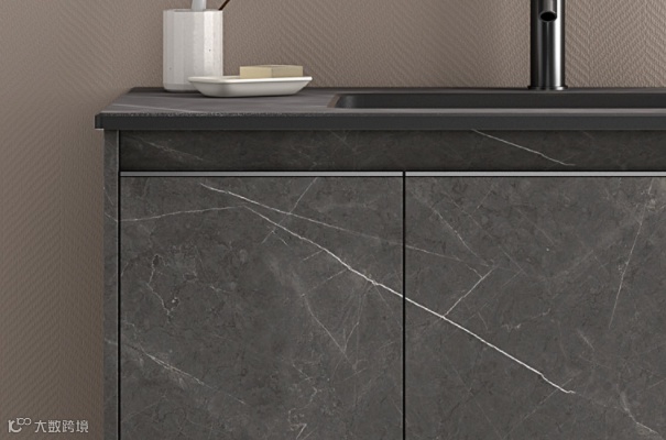 岩板的高冷感与实木的温暖感结合,刚中有柔。深灰表层游离其上的粗犷、自然纹理,与现代墙面背景相得益彰,尽显原始大气之美。