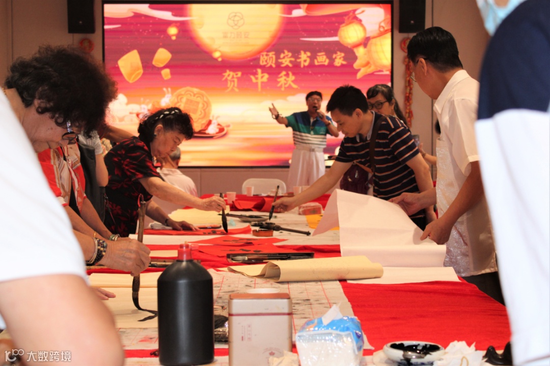 民谣有颂:八月十五玉兔灯。现场准备了猜灯谜环节,五颜六色的灯笼下挂着灯谜,猜中了就能获取精美礼品。长者们都兴致勃勃的去猜灯谜赢取礼品。猜灯谜环节后,长者们开始书法创作等活动,写字、画画、唱歌,活动在欢声笑语中进行着。