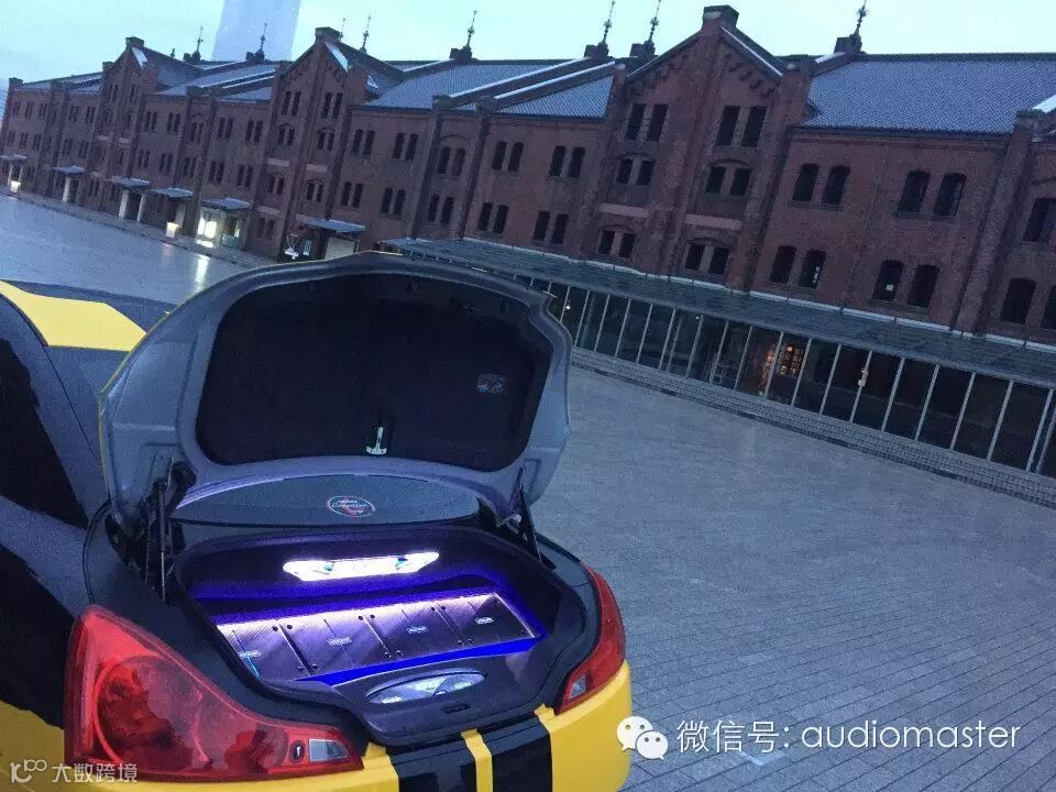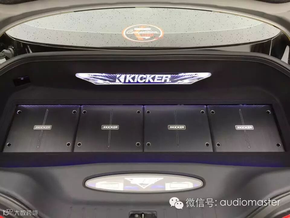 K牌2015年最新款的四台IQ功放整齐的安装在尾箱