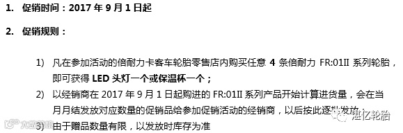 在市场价格不断上涨,为了体现倍耐力产品性价比,促进倍耐力12R规格性能最优异的产品销售,针对12R22.5 FR01S产品促销活动如下: