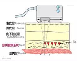 超声刀,又叫极限音波拉皮,它独特的聚焦射频能量,可以越过表层皮肤,直达皮下SMAS筋膜层,使筋膜层内极性水分子发生每秒四千万次的波相共振,水分子的摩擦生热,继而将SMAS筋膜全层精准而均匀的加热。