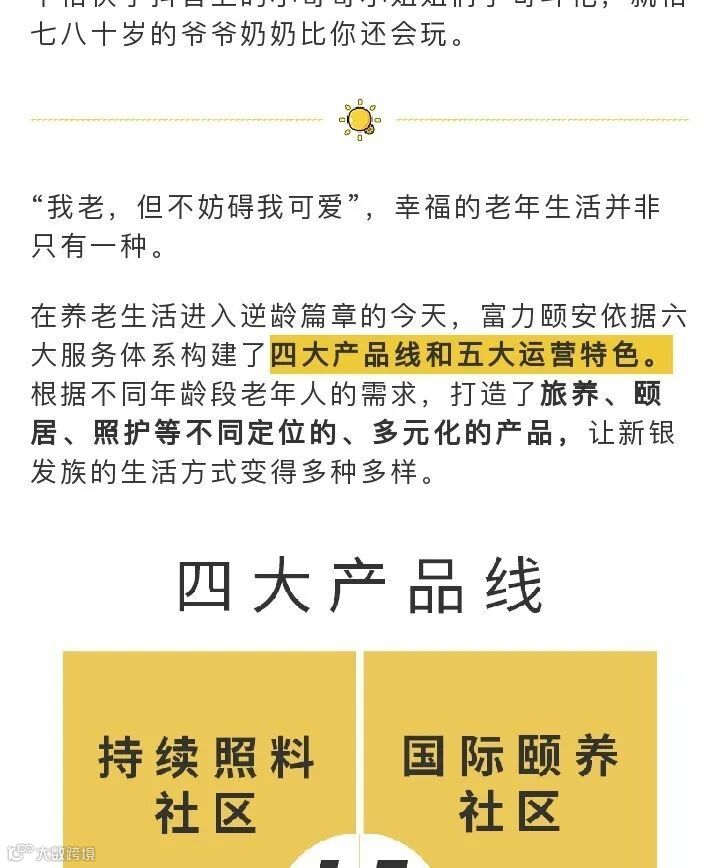 富力集团旗下康养品牌,为乐龄人群提供全龄化、专业化、高品质的一站式康养生活体验。