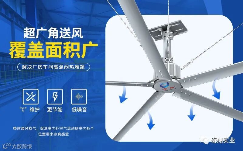 杭州吉利新能源汽车项目的领导经过反复讨论、研究、实地考察和对比,最终还是选奇翔工业大风扇来解决车间降温、通风问题。本项目总共采购了100多台7.2米的工业大风扇,那么工业大风扇能给企业解决哪些问题呢?