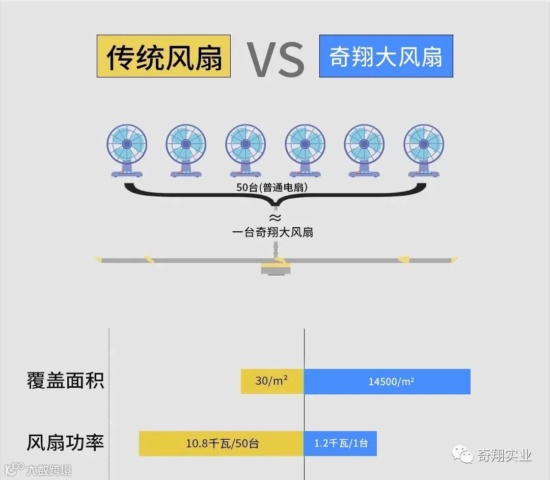 超大直径7.2米工业大风扇低转速,大范围内促使空气有序流动,每台风扇的有效近似覆盖面积超过1450平米;