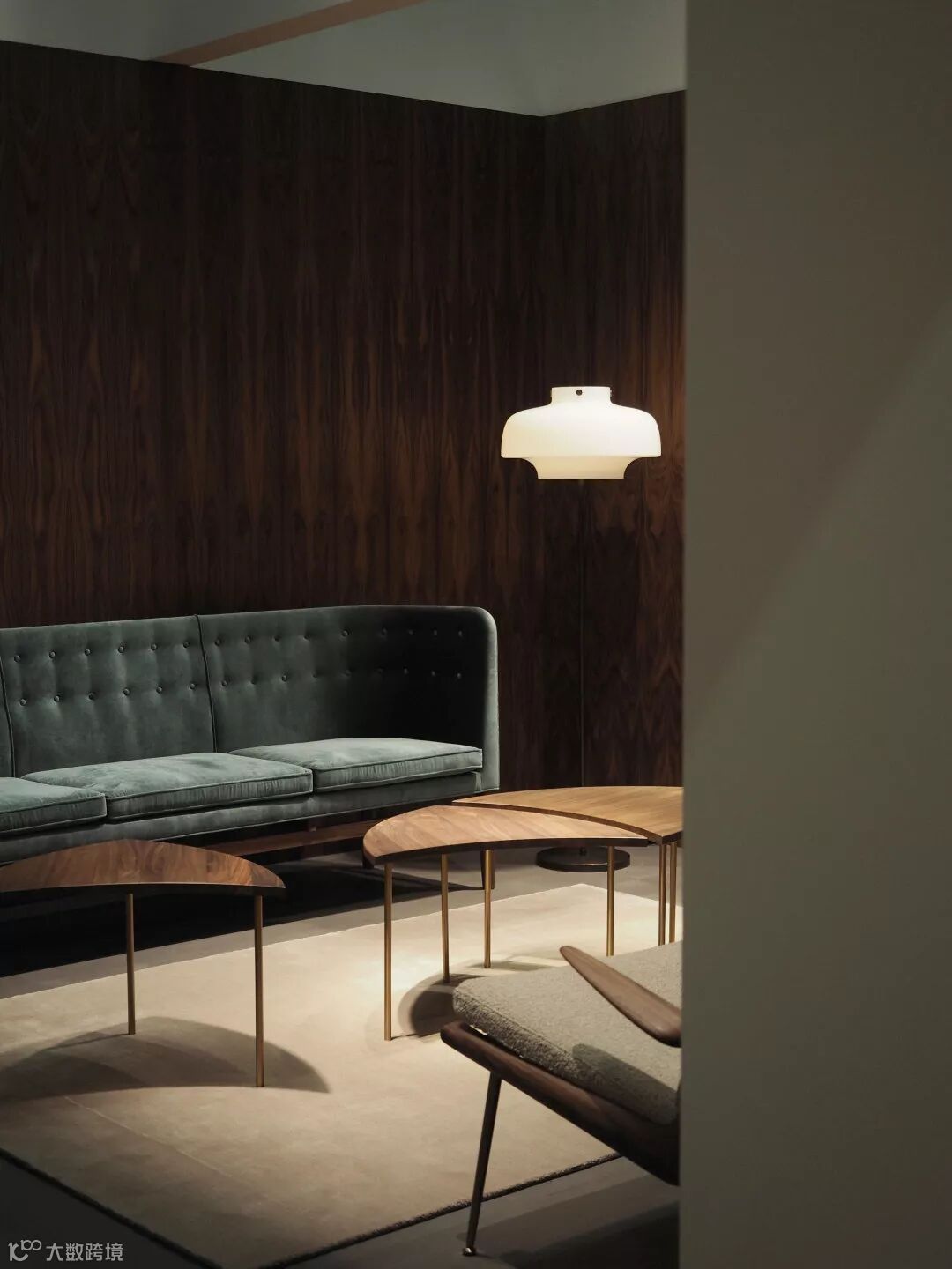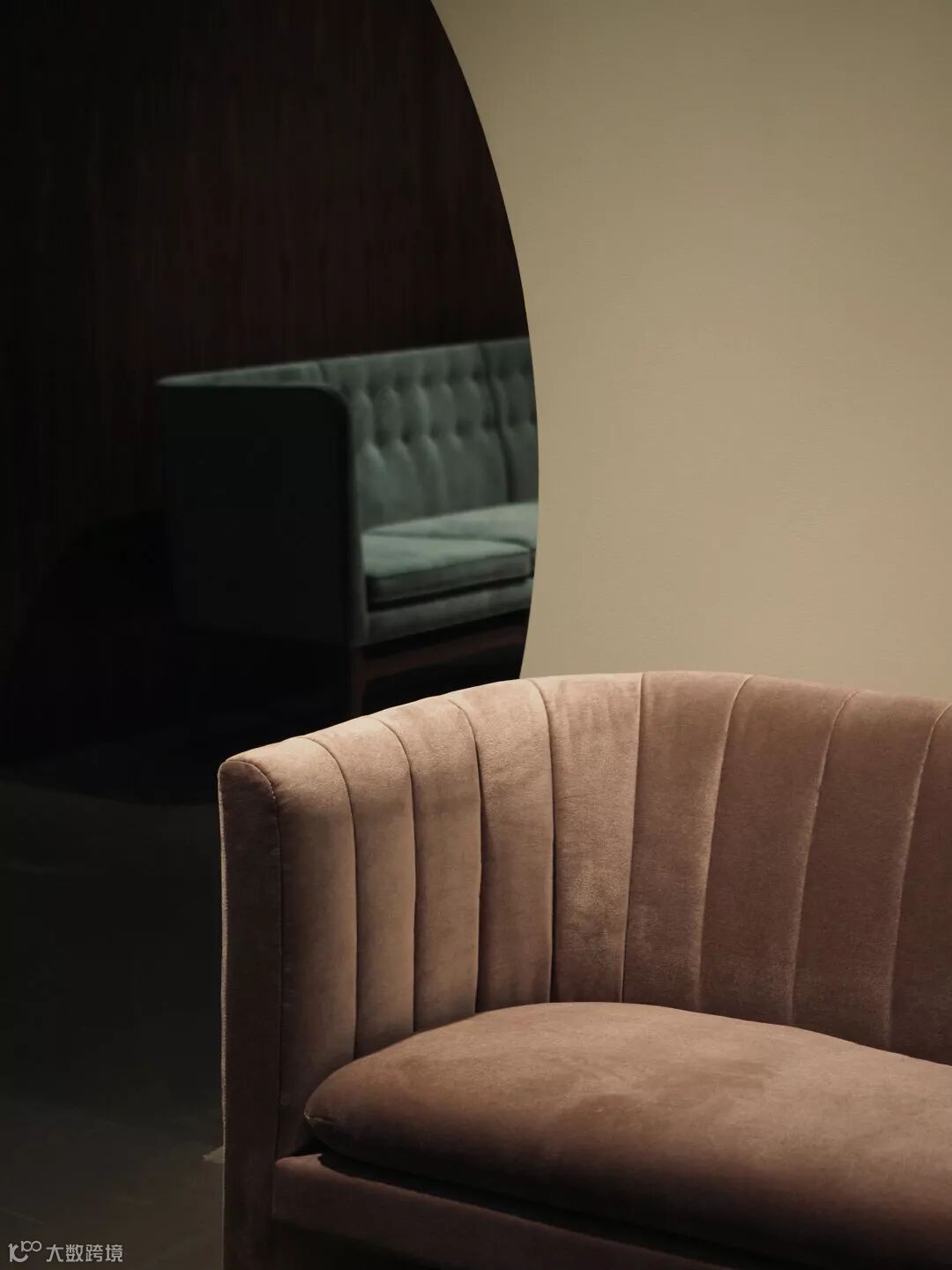 会客区域熟悉的 Develius 沙发和一旁的 Loafer 休闲椅,仅仅是换上同款天鹅绒面料,就在这个空间静静地融为一体,带来低调奢华的气息。