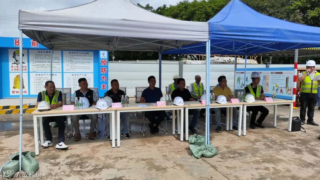 本次活动由我司联合芦苞镇城建和水利部门,以及芦苞镇应急部门共同举办。邀请了芦苞镇副镇长、芦苞镇应急办主任、项目建设方佛山市科达装备制造有限公司总经理周国胜,监理广东营造工程管理有限公司副总、总监谭礼平,以及我司集团副总经理吴贺勋莅临现场参与演练指导。