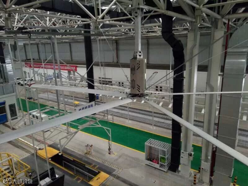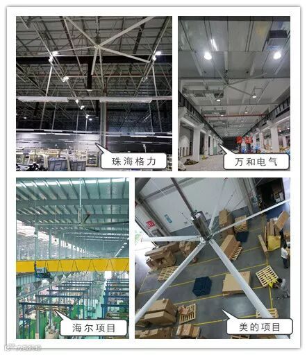 作为空调生产企业,车间降温不采用空调,而采用超大吊扇进行通风降温,显而易见,超大吊扇更适合解决高大空间的通风降温,解除闷热潮湿,加速空气流通的问题。