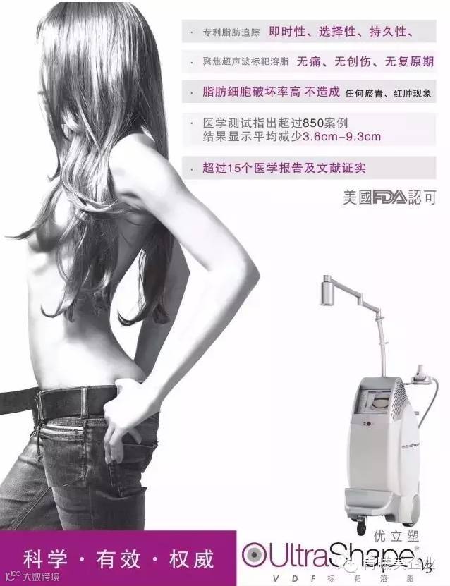 超声波有选择性的作用于脂肪细胞,使脂肪细胞肃清的同时其周围的皮肤、血管或神经等不会受到任何损害,同时将沾染和创伤的危险降低至零
