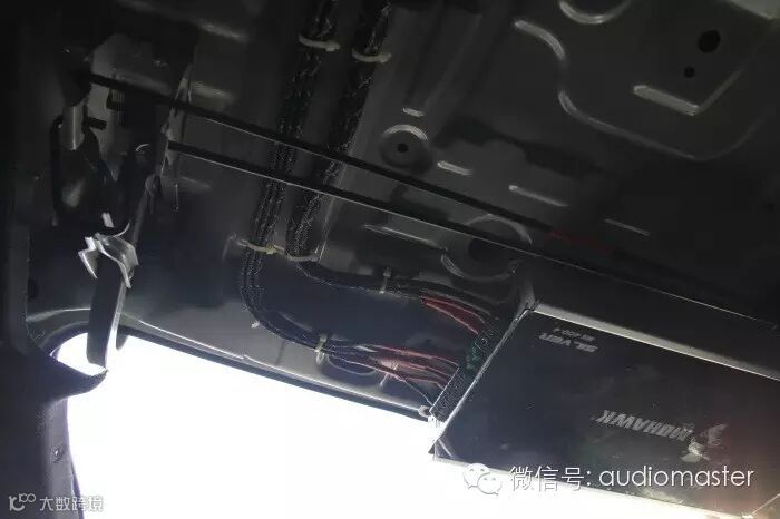主声场美国K牌ES65.2套装系列的高音清晰自然,中低频饱满,低频弹跳力十足,听人声和流行音乐都非常不错。直接替换原车扬声器,效果有显著提升。后声场使用美国豪客MC625同轴喇叭作为声场的衔接和补充。美国豪客MS400.4四路功放有着强劲的输出力,不但提供了足够的功率,亦可发挥出与之风格匹配的音色音质。K牌ES10寸低音下潜深,音质结实,拥有更精准的音效表现,让你在车内感受到明显的冲击力。