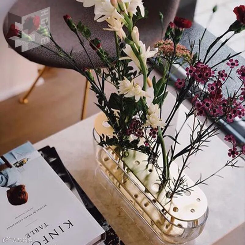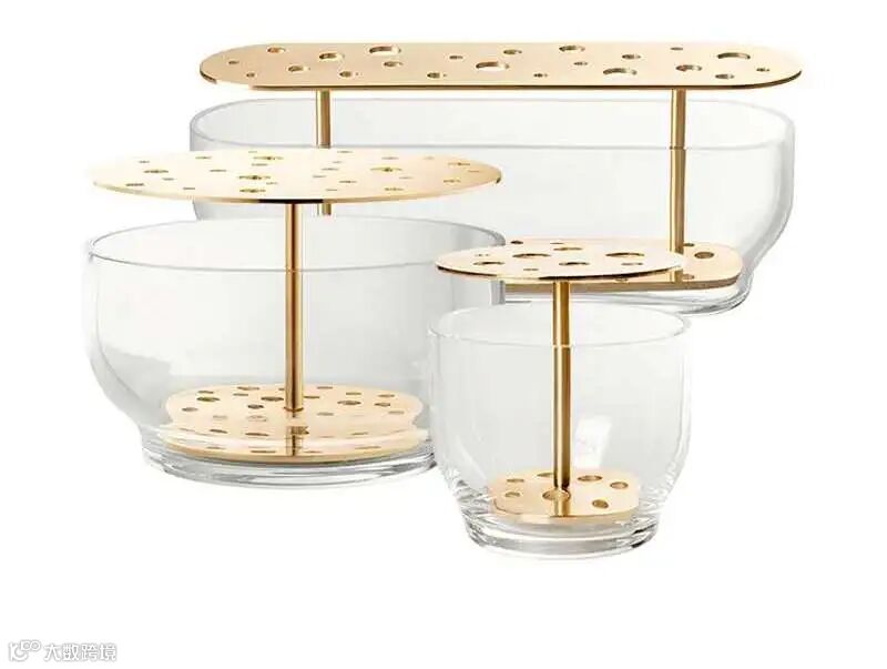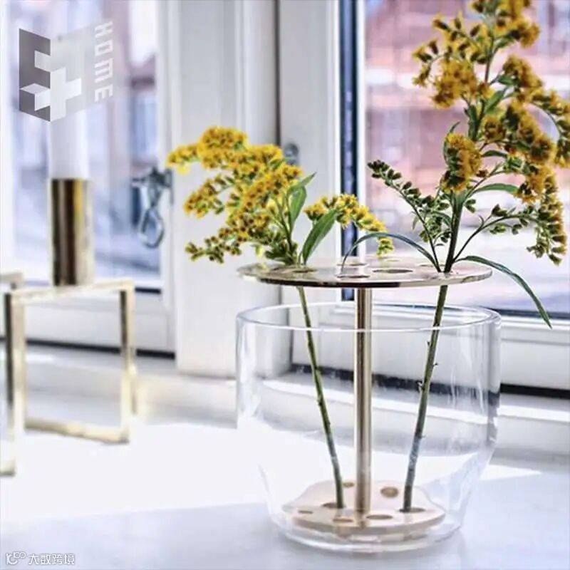 来自FRITZ HANSEN的艺术插花花瓶,有三种不同尺寸,可以搭配不同风格的花束,人工吹制透明玻璃搭配黄铜镀和不锈钢的金属材质,打造了立体的质感。