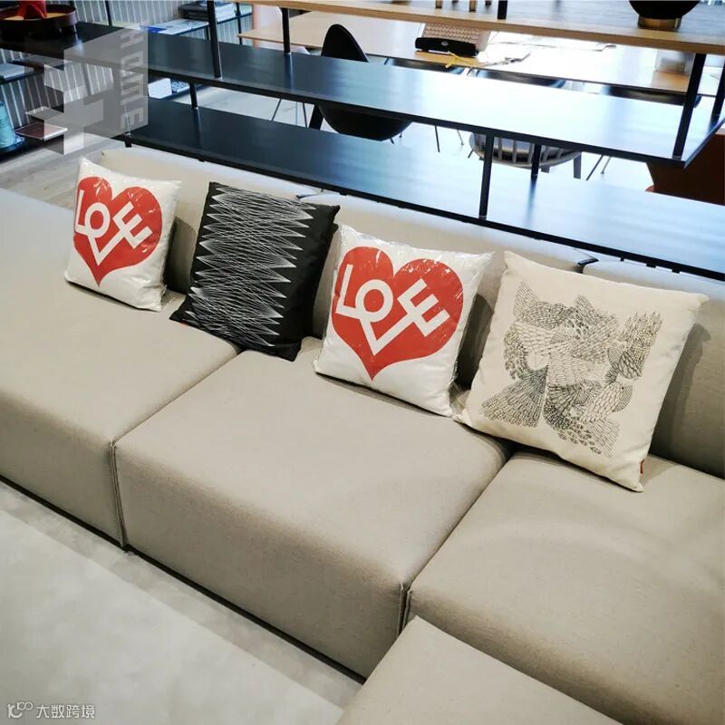 来自vitra的靠垫,表层织物是棉质布面印花,有着柔软亲肤的触感,填充物为鸭绒羽毛,带来最充盈的体积感,设计上,则有着vitra独有的品牌张力。