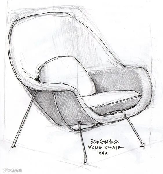 子宫椅的诞生最初来自用一个女性甲方的托付,在经历丧偶之后独立运作家具工厂,这位甲方要求Eero Saarinen设计一把能够让人获得包裹感和安全感的椅子,可以随时蜷缩其中,感受来自母体的温存,也汲取能量,很显然,Eero Saarinen交出了满分答卷。