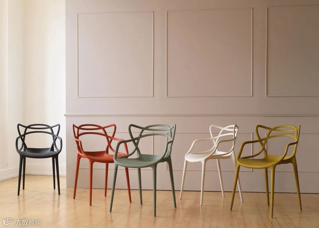 卡特尔大师椅是Philippe Starck向三位设计前辈的致敬之作,他们将Jacobsen系列7、Eero Saarinen的郁金香扶手椅以及Eames的伊姆斯椅三款椅子的轮廓并置在了一张椅子中,更难能可贵的是,这一带着设计史厚度的作品毫不沉闷,不仅轻巧通透,更便于堆叠。