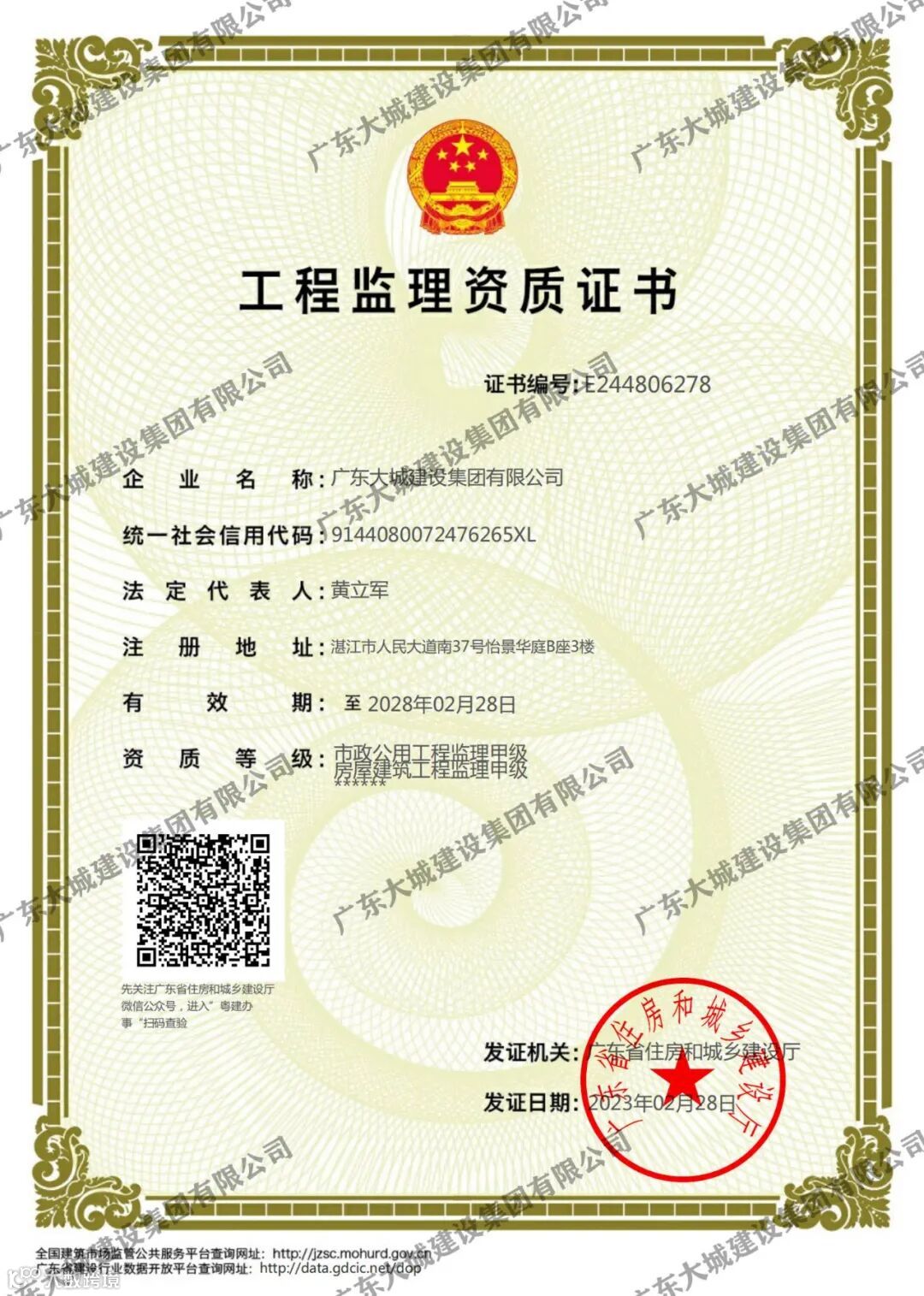 监理资质证书(市政公用、房屋建筑工程)