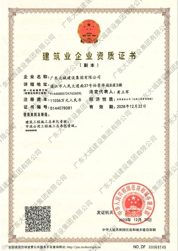 建筑工程及市政公用工程资质证书