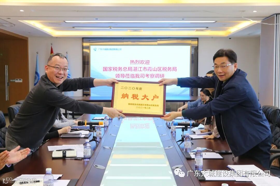 2021年3月4日,国家税务总局湛江市霞山区税务局局长符庆平等领导莅临我司考察调研,并向我司颁发“2020年度纳税大户”牌匾。