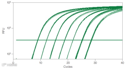 图1.完美的梯度稀释系列的扩增曲线