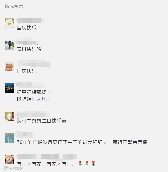 感谢大家踊跃地在留言板上留下了对祖国母亲的生日祝福~ 在众多的留言中,我们精选了七位朋友的留言,分别是以下的留言: