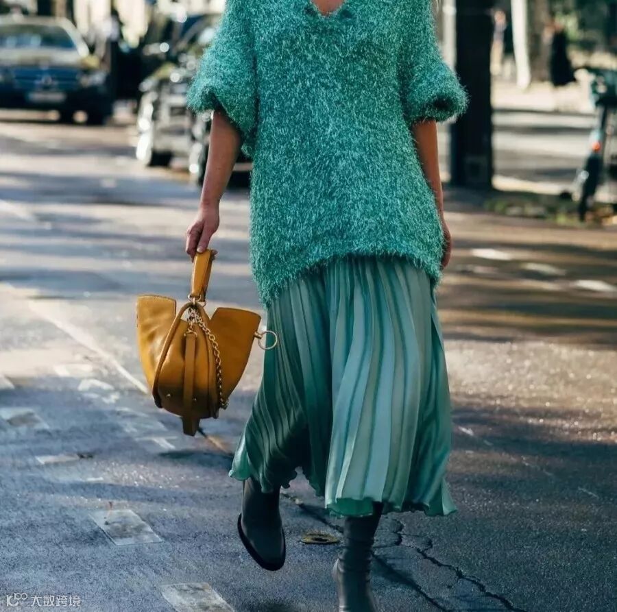 裙子搭配毛衣,是简单又特别的搭配。百褶裙+毛衣的look看着减龄还高级。