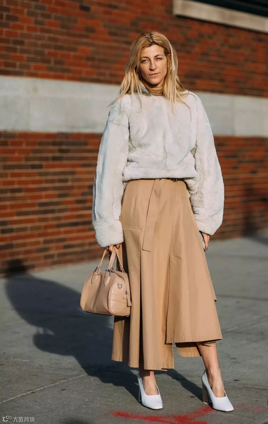 除了拼接羊羔毛今年全毛外套也很受欢迎,看着超级暖和,利用用高腰裙打造腰线,粉粉嫩嫩可可爱爱~