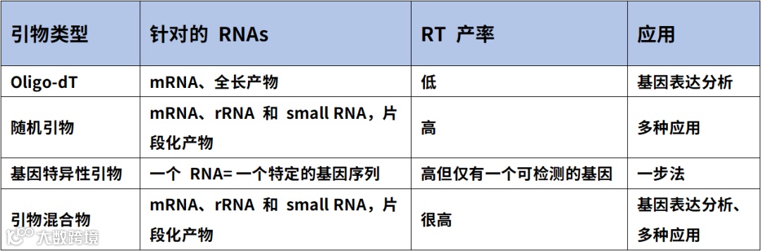 根据样品类型数量和分析策略的不同,用于启动反转录的引物选择会对 RT-qPCR 结果产生很大影响。