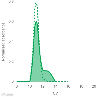 您是否在单克隆抗体纯化的过程中(阳离子交换后)会出现双峰呢?第二个峰是 mAb 的多种聚集体形式的混合物?这是否降低了有效产品的产量?