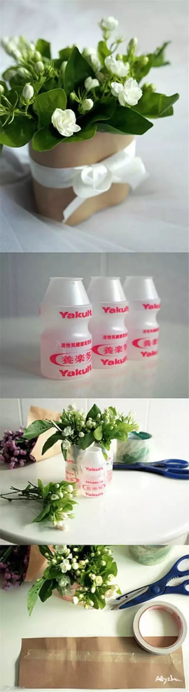 5.可以再系上缎带之类的小装饰。或者让孩子画点儿什么在上面:) 此刻,满屋都是这束小茉莉散发的清甜香味儿。