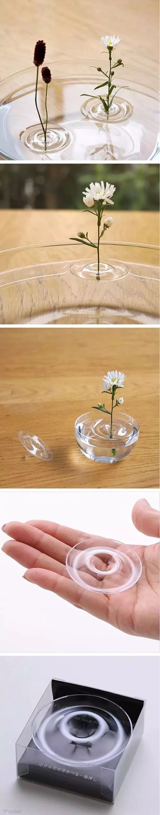 花瓶,大概是每家每户都会有的一件小玩意,它们使用简单,但是要想获得真正不错的装饰效果,却又需要一些有底蕴的学问——否则,这世间就不会出现一种叫“插花”的艺术了。但毕竟不是每个人都有那时间和闲情,所以,对习惯和被习惯着快节奏的现代人而言,这款浮动波纹花插(Floating Vase RIPPLE),也许更值得我们考虑,因为,它只为一枝花而设计:采用塑料材质,整个造型就像是一圈水波纹,可以轻松地浮在水上,中间有小孔,刚好可以插入一枝花,清幽地在水面绽放,孤绝,淡雅,最适合一些渴望安静的小心思。