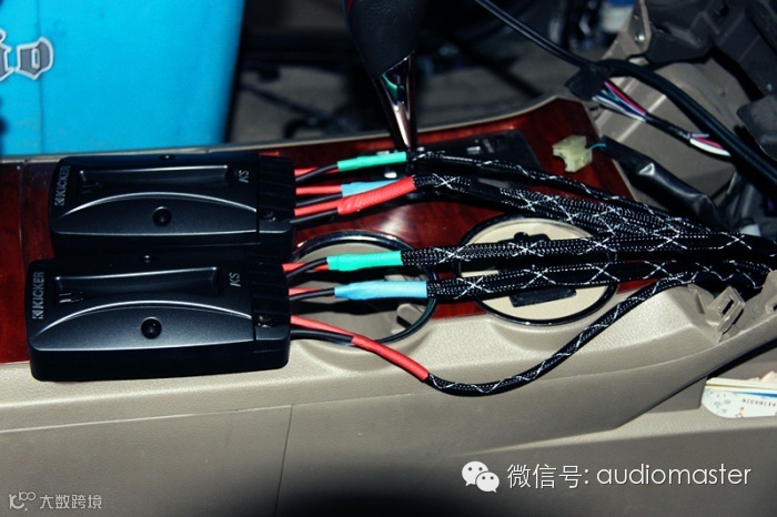 前门的分频器装在中控下面,其所有的线材全部套管后再加上热缩管使其线材具有更强的使用期限。