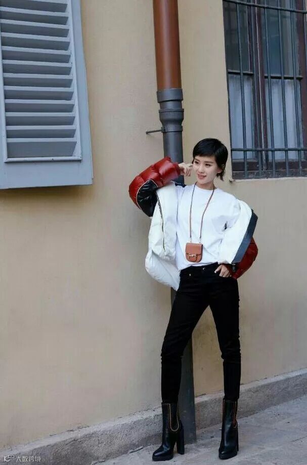 👉 泡泡袖、荷叶边、包括在肩线做成oversized的飞机夹克,都是宽肩的雷区,它们能流行是因为时尚博主和明星都瘦到不行,需要夸张点的元素平衡一下比例。看看蒋欣在维达立体美新品发布会上的T台秀,就知道穿肩部设计夸张的衣服有多显胖了。