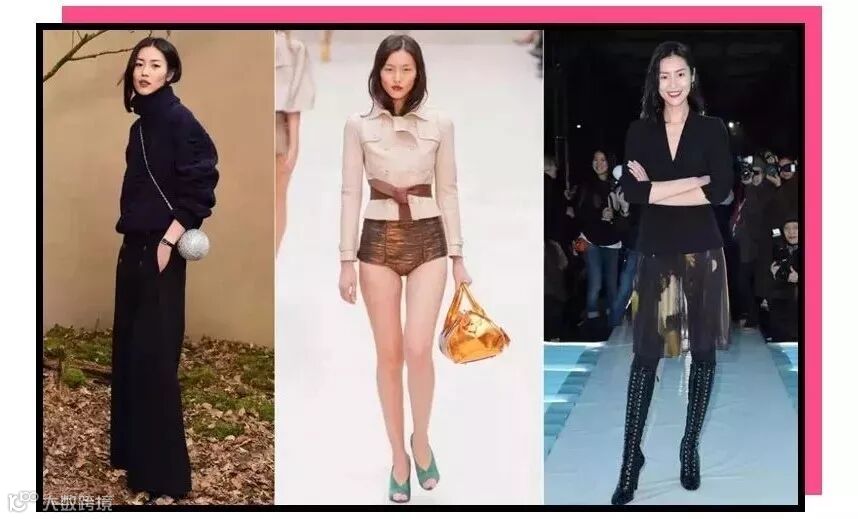 👉 适合造型——V字领、露半肩、长项链、背带裤、小伞裙、长大衣等,可以分割身体纵向线条、加大下身宽度、气场强大的服饰。