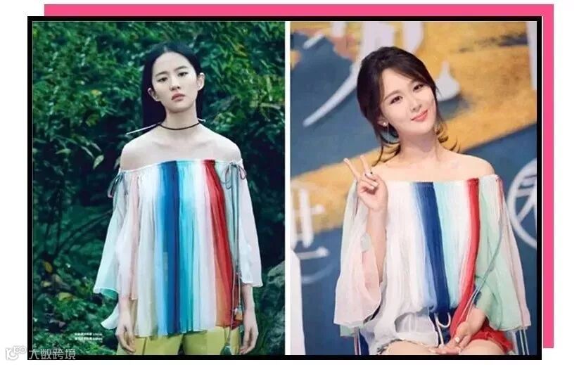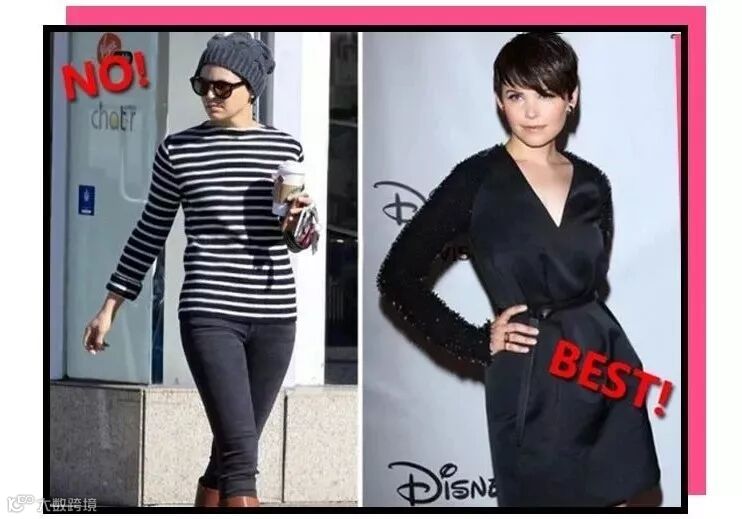 在明星当中唐嫣和周冬雨就是很明显的窄肩了,她们穿一字肩和横条纹就很好看。